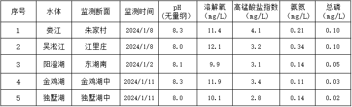 2024年1月蘇州工業園區地表水監測結果