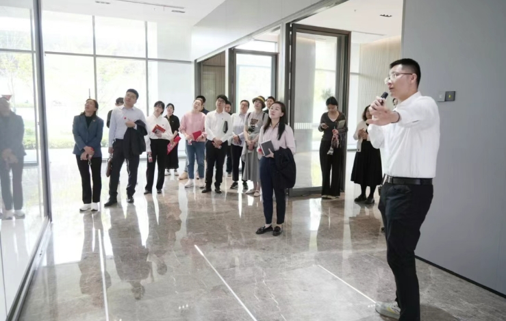 隨后,參訓隊伍走進位于陽澄數谷的SIP集成電路產業園展廳,深入調研“黨建鏈+產業鏈”雙鏈融合的創新實踐。作為全國集成電路產業高地,園區以高質量黨建鏈賦能集成電路產業鏈發展,通過建立產業鏈聯合黨委,推動上下游企業協同創新,實現黨建與業務的同頻共振。參訓人員邊走邊看,通過工作人員生動的講解,對園區集成電路產業的發展有了更直觀的認識。