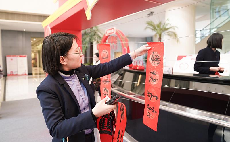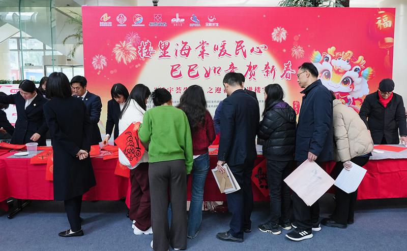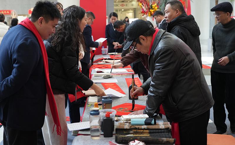 活動現場一片歡樂祥和的節(jié)日氛圍,前來領取春聯及福字的員工絡繹不絕,大家手捧著新鮮出爐的春聯,臉上洋溢著幸福的笑容,對書法家們的精湛技藝贊不絕口。一位在國際大廈工作的員工表示:“在超市選購春聯雖然方便,但現場手寫的春聯更有溫度、更有年味。我拿到了一副很合我心意的手寫春聯,一定要把這份福氣帶回家。”短短兩個小時內,現場就送出了約500副春聯和500個福字,將滿滿的福氣傳遞到每個人手中。
