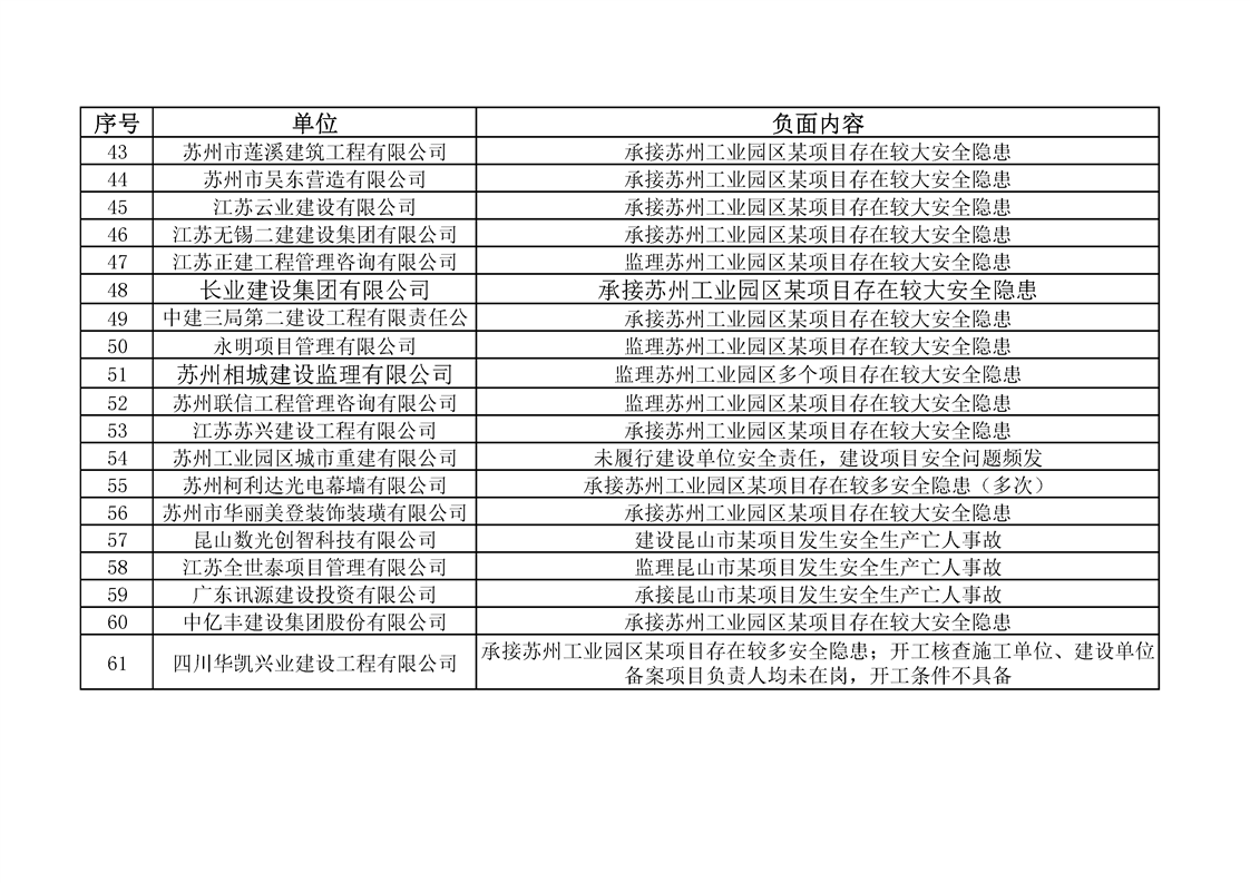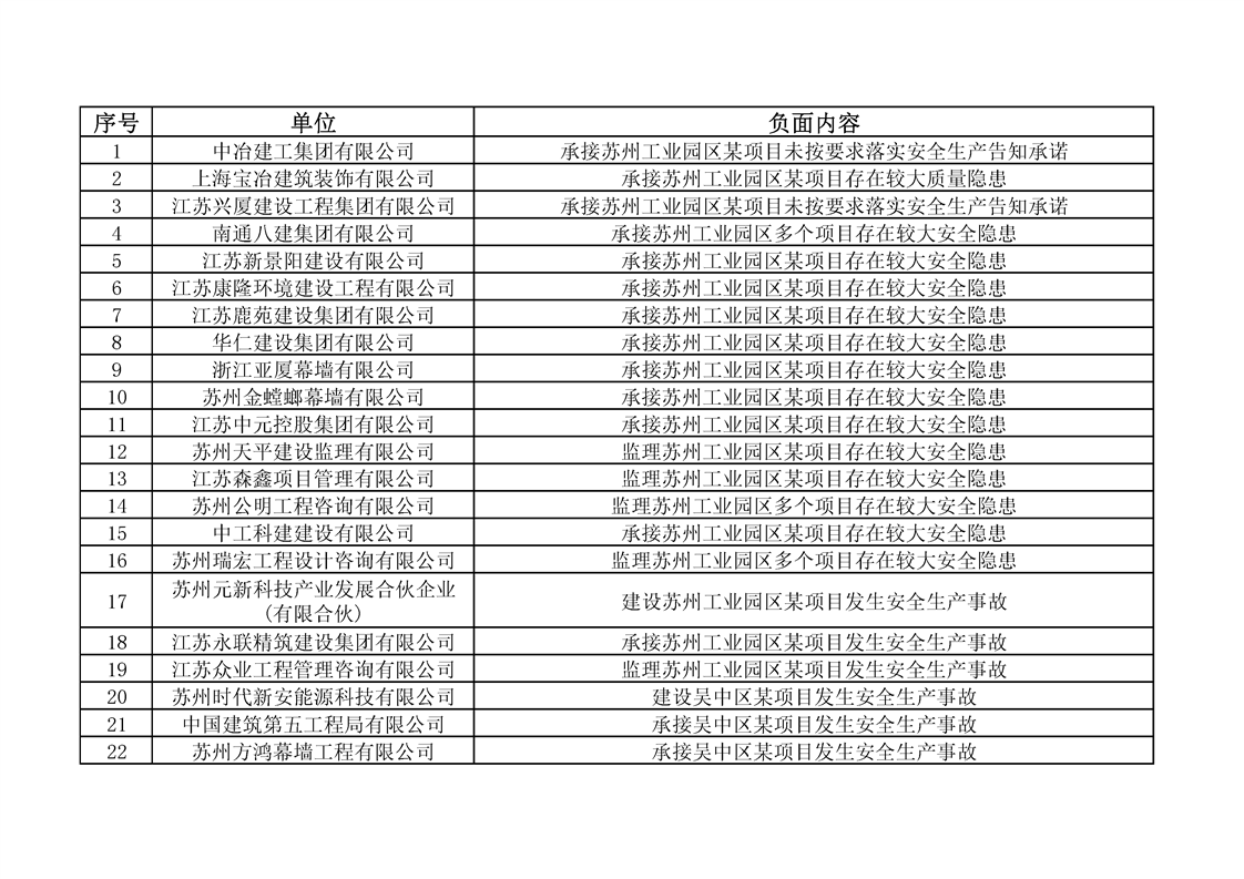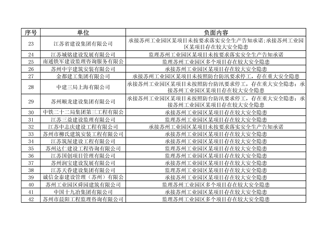 蘇州工業園區建筑施工安全生產告知承諾負面清單