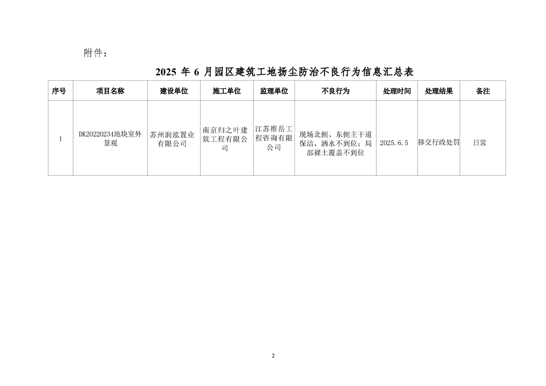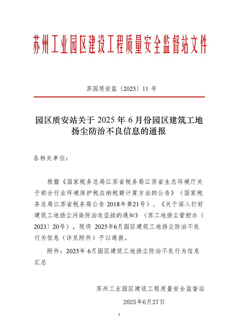 園區質安站關于2025年6月份園區建筑工地揚塵防治不良信息的通報
