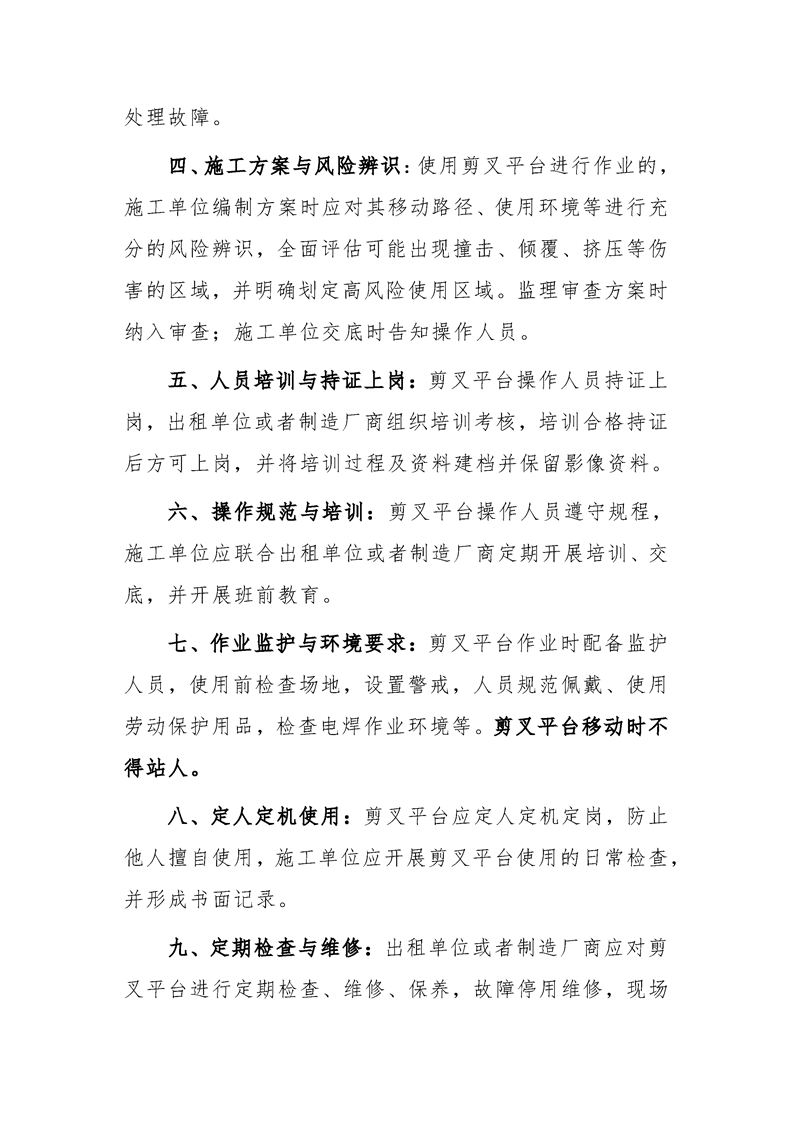 關于加強建筑施工現場剪叉式移動升降平臺安全管理的提示函