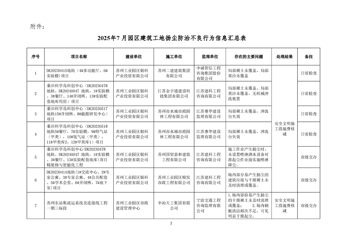 園區(qū)質(zhì)安站關(guān)于2025年7月份園區(qū)建筑工地?fù)P塵防治不良信息的通報(bào)