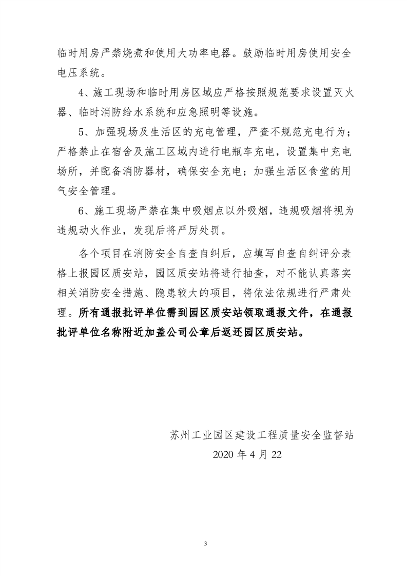 園區(qū)質安站關于進一步加強蘇州工業(yè)園區(qū)建筑施工消防安全管理的通知