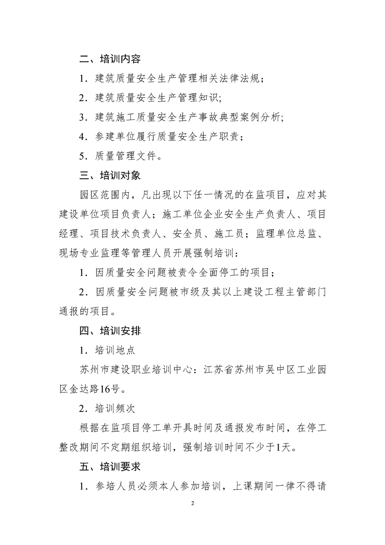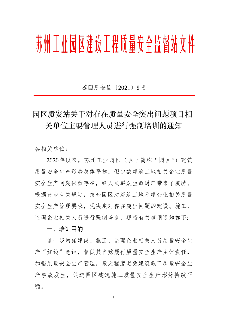 園區(qū)質(zhì)安站關(guān)于對存在質(zhì)量安全突出問題項目相關(guān)單位主要管理人員進行強制培訓(xùn)的通知