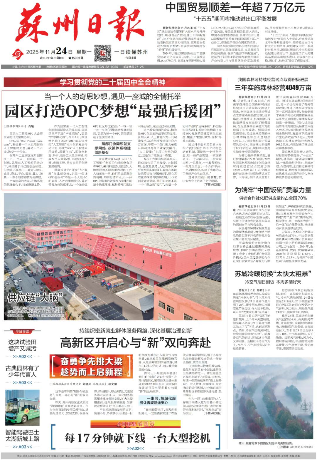《蘇州日?qǐng)?bào)》頭版頭條關(guān)注園區(qū)