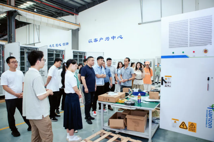活動(dòng)伊始,企業(yè)代表一行實(shí)地參訪了蘇州華儲(chǔ)電氣科技有限公司,近距離觀摩企業(yè)儲(chǔ)能系統(tǒng)生產(chǎn)線,深入了解企業(yè)在儲(chǔ)能領(lǐng)域的技術(shù)創(chuàng)新與產(chǎn)品應(yīng)用。據(jù)介紹,蘇州華儲(chǔ)電氣科技有限公司于2022年在蘇相合作區(qū)成立,是A股上市公司新華都特種電氣股份有限公司的控股子公司,其母公司是相關(guān)細(xì)分市場(chǎng)的龍頭企業(yè)。在企業(yè)生產(chǎn)車(chē)間,相關(guān)負(fù)責(zé)人詳細(xì)講解了公司的發(fā)展歷程、儲(chǔ)能產(chǎn)品相關(guān)核心技術(shù)和優(yōu)勢(shì),讓嘉賓們深刻感受到儲(chǔ)能技術(shù)如何從實(shí)驗(yàn)室走向產(chǎn)業(yè)化。