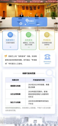 目前,可掌上查閱的民生檔案涵蓋2019至2021年在園區(qū)辦理的婚姻登記檔案,2018年園區(qū)星海醫(yī)院、星湖醫(yī)院、星浦醫(yī)院、星塘醫(yī)院和九龍醫(yī)院的出生醫(yī)學證明檔案,2005年在原跨塘鎮(zhèn)申領的獨生子女證。
