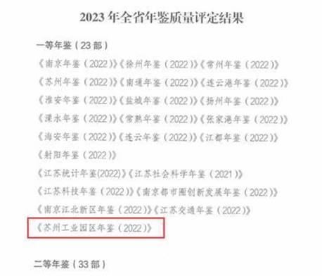 堅持質量為先,年鑒編纂水平顯著提升。園區檔案管理中心樹立精品意識,結合全市地方綜合年鑒質量評定反饋意見,及時總結園區年鑒編纂經驗,優化框架結構,精益求精做好稿件編審工作,尋找質量提升方向和空間。《蘇州工業園區年鑒(2021)》獲評全市綜合年鑒質量評定一等獎,《蘇州工業園區年鑒(2022)》在2023年全市地方綜合年鑒質量評定中再次獲得肯定,并被推薦參加2023年全省年鑒質量評定活動,最終獲評一等年鑒。
