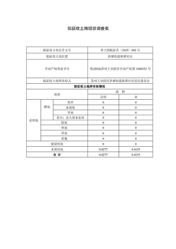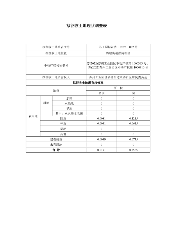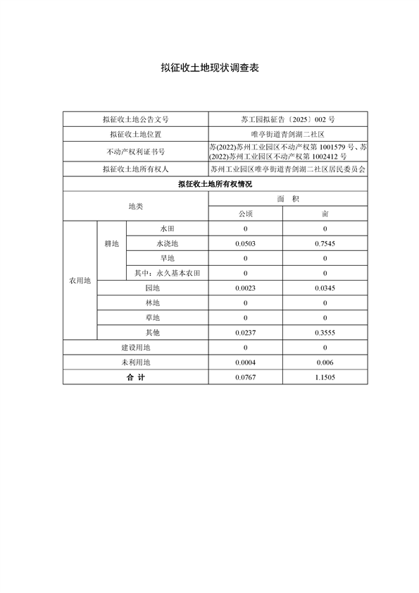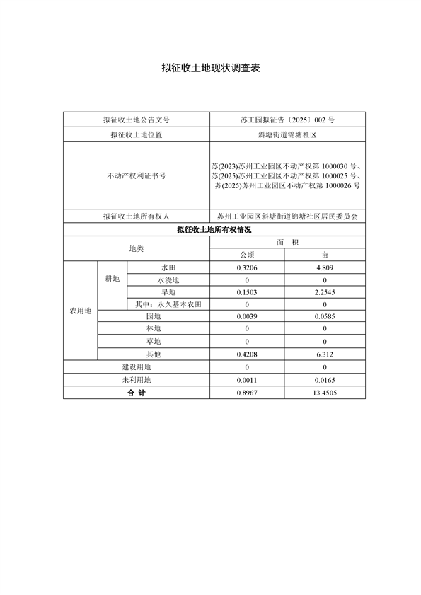 蘇州工業(yè)園區(qū)2025年度第4批次城市建設(shè)用地--蘇州工業(yè)園區(qū)管理委員會征地補償安置方案公告(蘇工園征補安置〔2025〕004號)