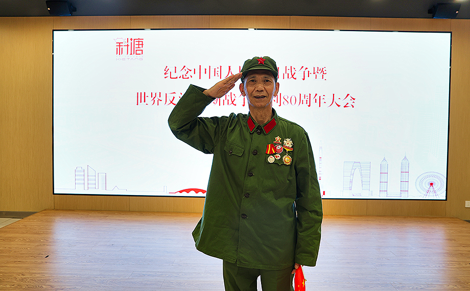 上午九點不到,斜塘街道退役軍人服務站已經集聚了60余位退役軍人。今年80歲的抗美援越老兵肖劍青胸前掛滿勛章,端坐在第一排?!敖裉煊^看閱兵直播非常激動,心情就如當年援越凱旋回國那天一樣。當年,我們奔赴援越抗美的戰爭,武器很落后,完全是憑借著頑強的意志打了勝仗。今天的閱兵式,我看到了很多新式武器,很自豪很激動,我們有能力更好地守衛祖國,捍衛和平?,F在,我還是園區八一宣講團成員,我會繼續為年輕一代講解,這是我新的光榮使命?!?/p>