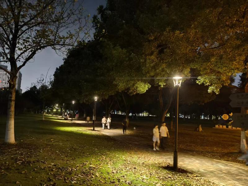 改造工程首先聚焦于照明設施的革新。園內步道原有的草坪燈被替換為亮度更高、覆蓋范圍更廣的庭院燈,讓市民在夜間行走時每一步都充滿光明與安心,極大提升了游園的幸福感。