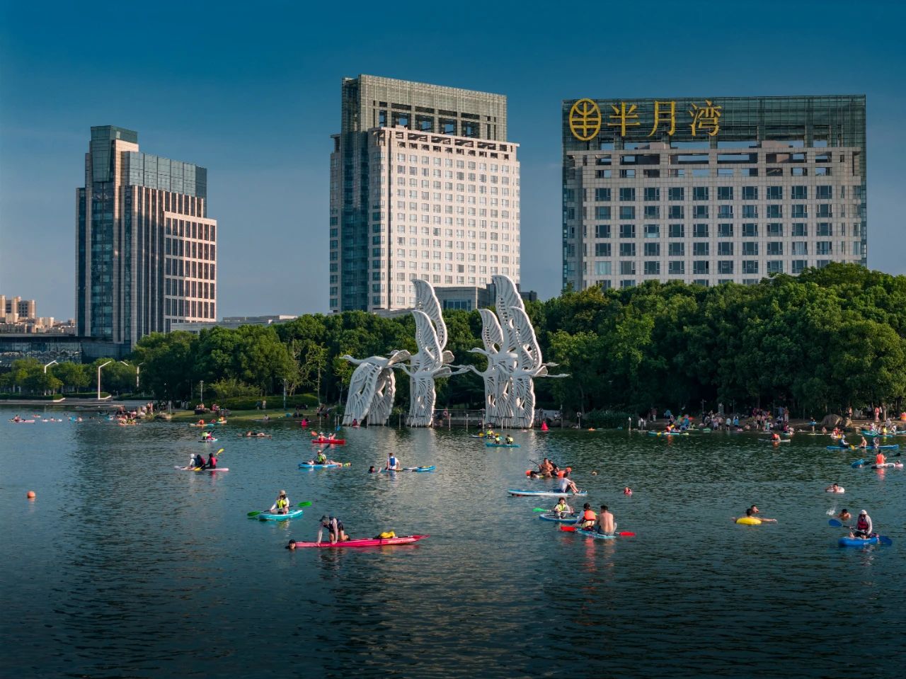 而同樣在這個(gè)盛夏,另一種形態(tài)的“附近”正于水面悄然展開。周末午后的獨(dú)墅湖畔,白鷺點(diǎn)水,波光瀲滟,幾十塊彩色槳板在湖面排成一道流動(dòng)的風(fēng)景線。從上海趕來參加“水上嘉年華”的程序員小林,雖然一開始跪在板上略顯笨拙,卻笑得格外燦爛:“本來以為這種高溫天只能躲在空調(diào)間,沒想到在湖上認(rèn)識(shí)了一群板友——槳板,正在變成我們這代人的新社交貨幣。”