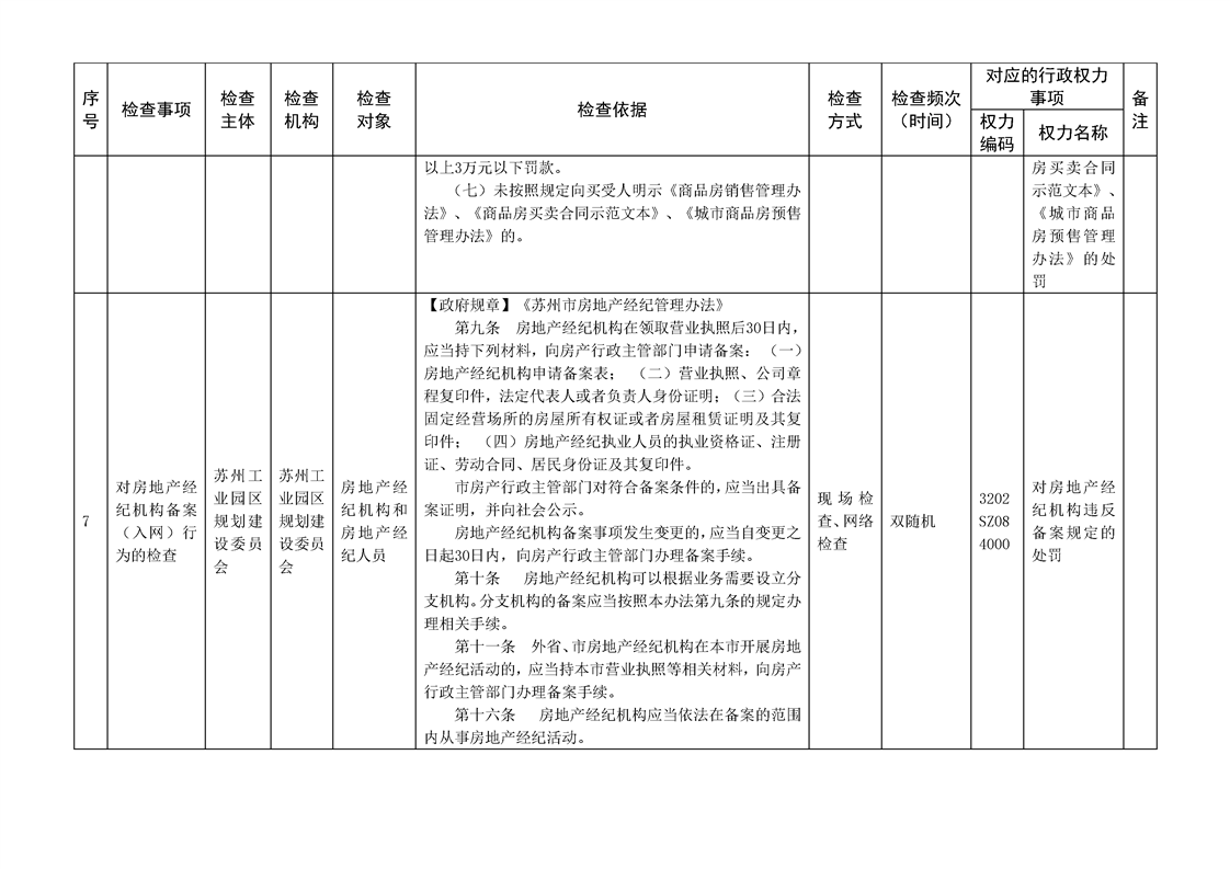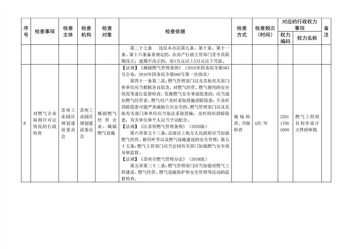 蘇州工業園區規劃建設委員會行政檢查計劃清單(2025年度)