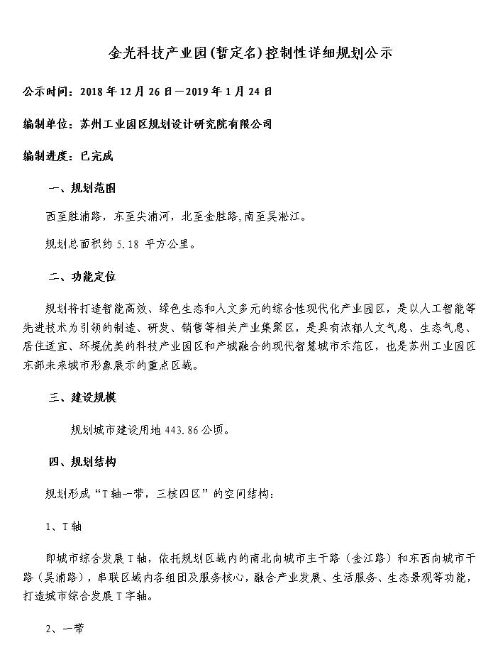 金光科技產(chǎn)業(yè)園(暫定名)控制性詳細規(guī)劃公示(一)