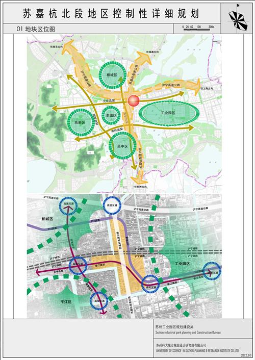“四區(qū)”是指沿新蘇路南部的濱水居住功能區(qū);新蘇路北部、蘇嘉杭以西的綜合商業(yè)功能區(qū);婁江大道以東的家居商業(yè)集聚區(qū);沿?fù)P帆路西側(cè)的汽車服務(wù)集聚區(qū)。