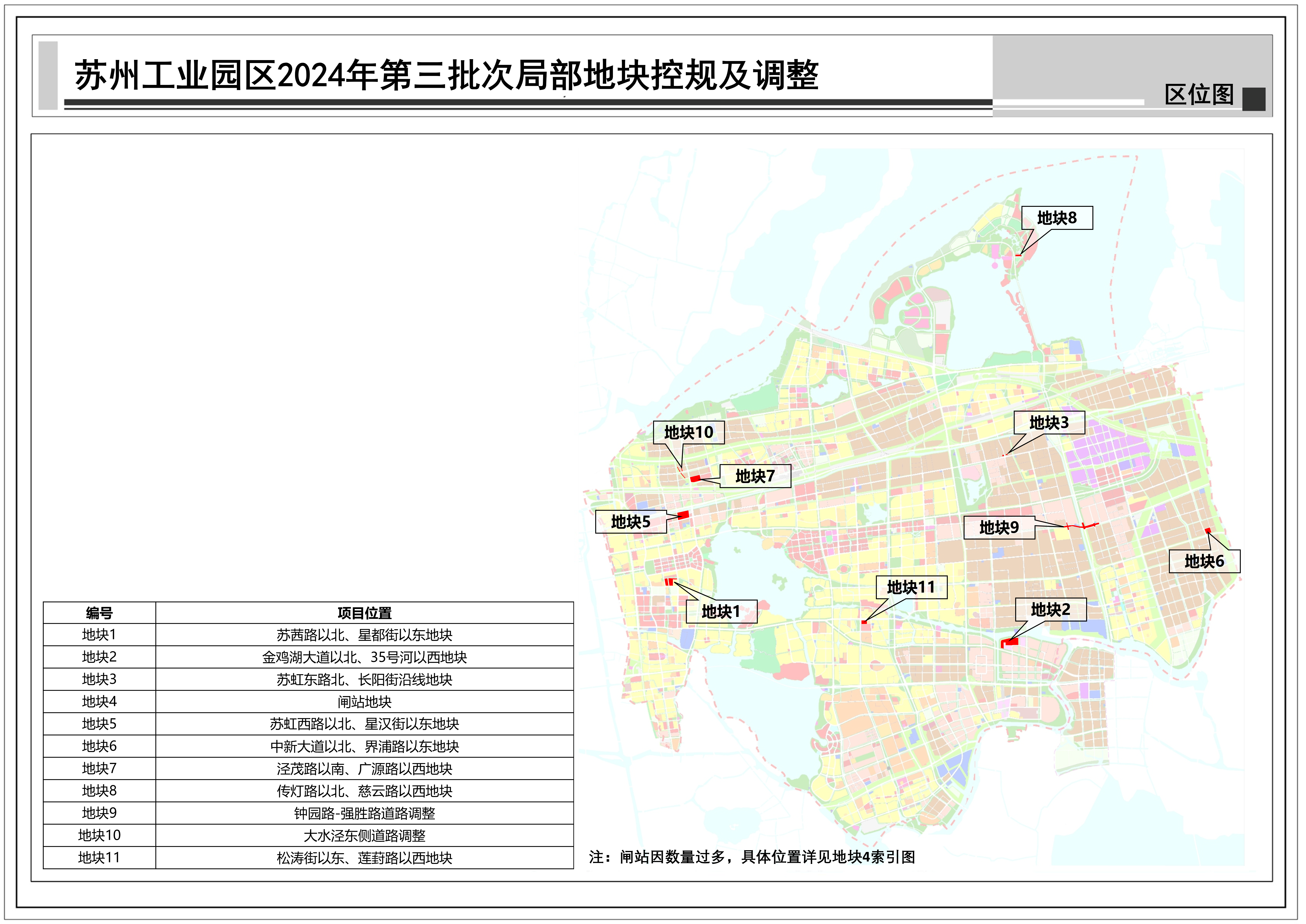 蘇州工業(yè)園區(qū)2024年第三批次局部地塊控規(guī)及調(diào)整:共包括11個(gè)地塊,總用地面積約0.52平方公里,詳見附圖區(qū)位圖。