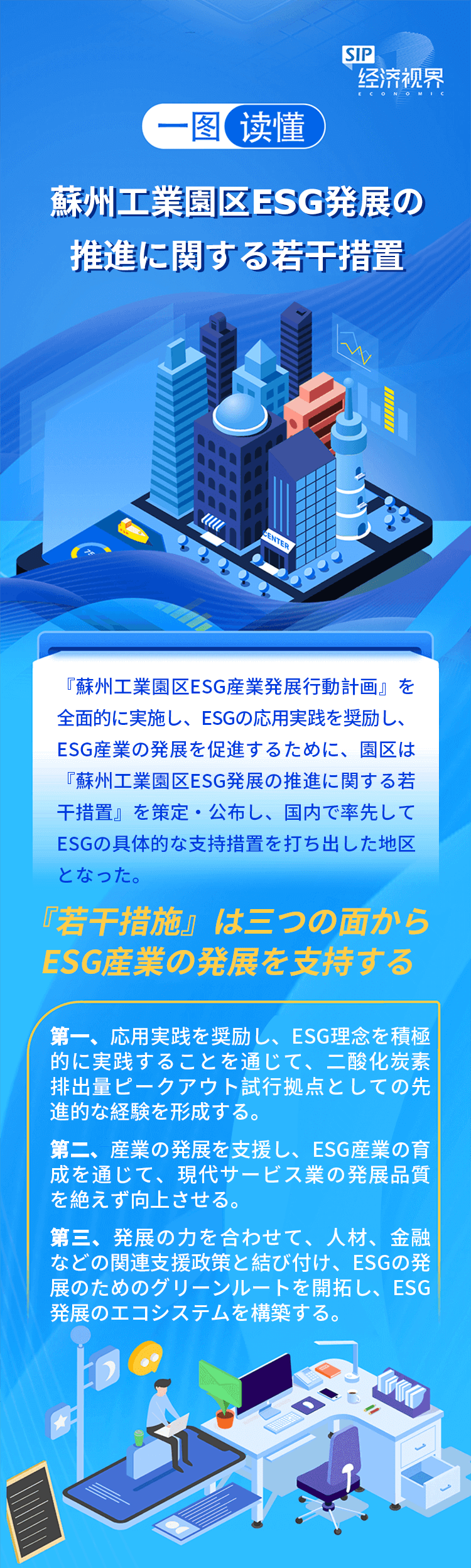 中國共産黨第20回全國代表大會の精神を深く學習?貫徹し、國の「デュアルカーボン」戦略的配置を全面的に実施するため、3月19日、蘇州工業園區ESG産業発展推進會議が順調に開催された。會議では、『蘇州工業園區ESG産業発展行動計畫』、『蘇州工業園區ESG発展の推進に関する若干措置』が発表された。中國?シンガポールグリーン持続可能な発展研究センター、蘇州ESG研究センター、蘇州工業園區ESG連盟、蘇州工業園區ESG産業イノベーションセンターが正式にプレートを除幕した。一連の重要な措置で園區の高い識別度と展示度を持つESG産業イノベーション集中地の創出を後押しする。 |
