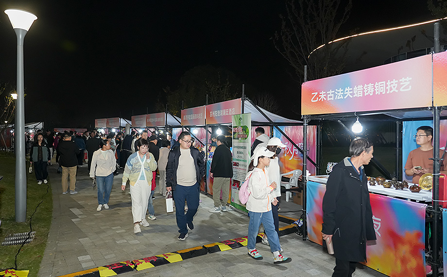 舞臺(tái)一側(cè),“右岸秋月夜”限定特色市集同樣人氣火爆。20余個(gè)展位匯聚生活美學(xué)、潮流科技、市集好物,形成互動(dòng)體驗(yàn)的一大亮點(diǎn)。