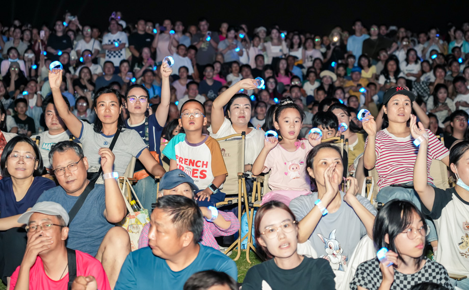 “特別喜歡《勇氣》的全場大合唱,大家一起打開手機閃光燈,整個金雞湖仿佛都被星光點亮了?!眹鴳c假期從外地來園區游玩的大學生王同學興奮地分享。當晚,多首耳熟能詳的歌曲引發全場大合唱,觀眾手中的點點星光隨節奏搖曳,與湖面倒影交相輝映,將現場氣氛推向高潮。