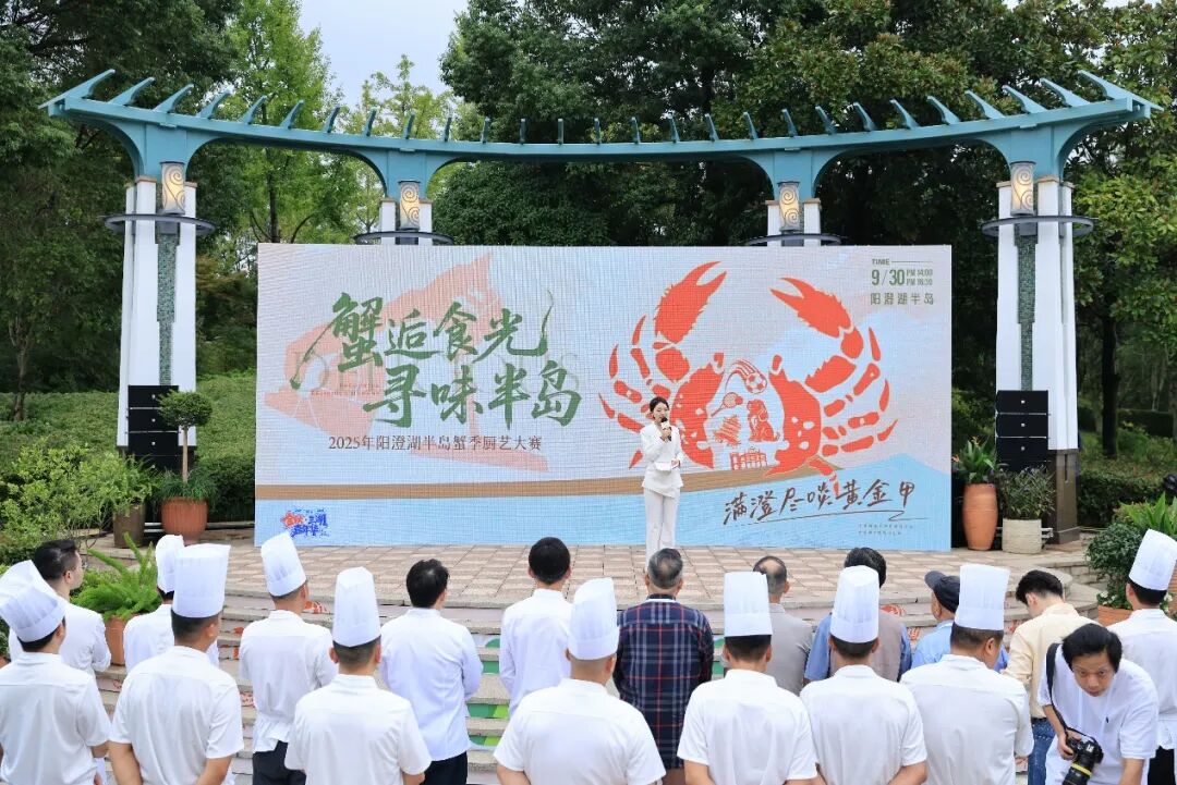 9月30日,在比斯特蘇州購物村湖畔大道,一場以蟹為媒的秋日盛宴“蟹逅食光尋味半島”2025陽澄湖半島蟹季廚藝大賽火熱開賽。