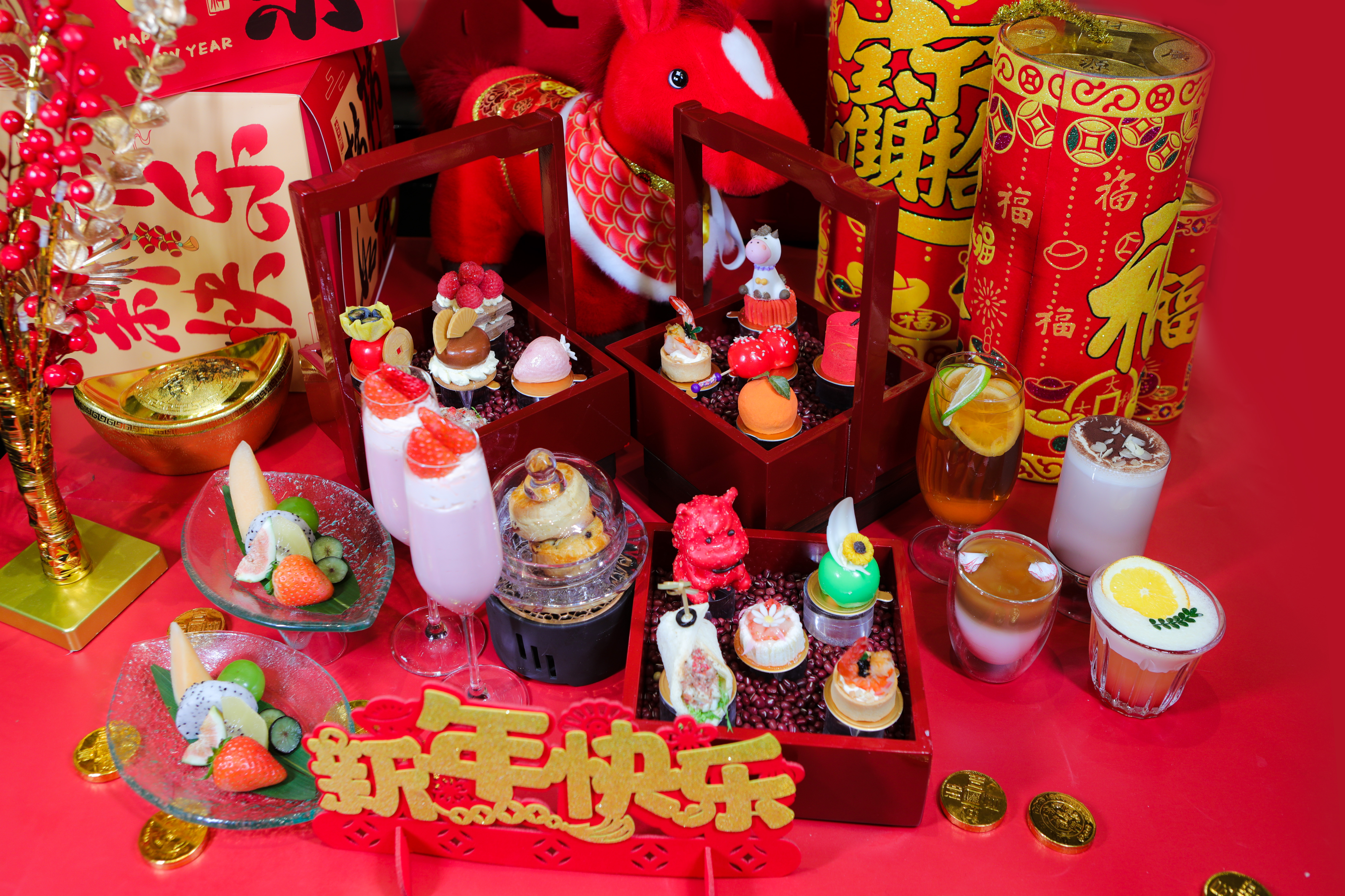 而蘇州四季酒店則盡顯精致格調。酒店園林庭院內。紅燈籠與臘梅相映成趣,暖意與詩意撲面而來。酒店金璟閣中餐廳以匠心巧思,精心烹制多款蘊含深厚祝福的新春菜品。云合全日制餐廳推出豐盛的新年除夕自助晚餐,滿足不同賓客的口味需求。瓏廊則推出新春主題下午茶,傳統中式美點與西式甜點巧妙融合,傳遞新春的溫馨祝福。