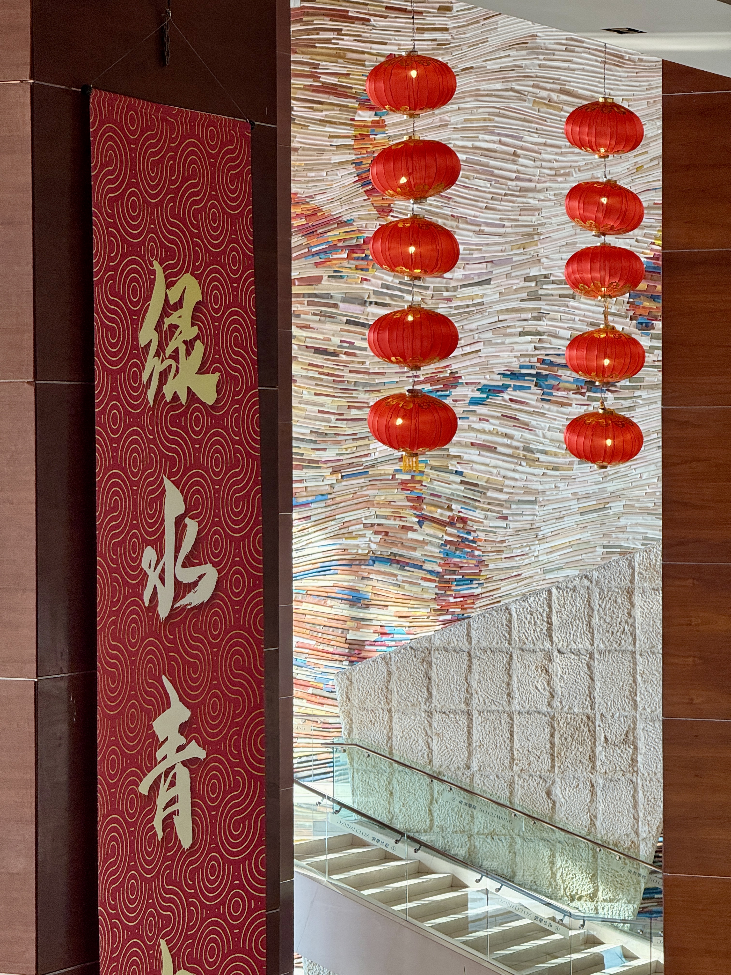 年味,不止于活動(dòng),更浸潤(rùn)在空間與細(xì)節(jié)中。金雞湖大酒店大堂以《姑蘇繁華圖》迎賓,將賓客悄然引入江南意境;酒店整體設(shè)計(jì)融匯園林“借景”智慧,營(yíng)造出自然與人文相映的沉浸場(chǎng)景。