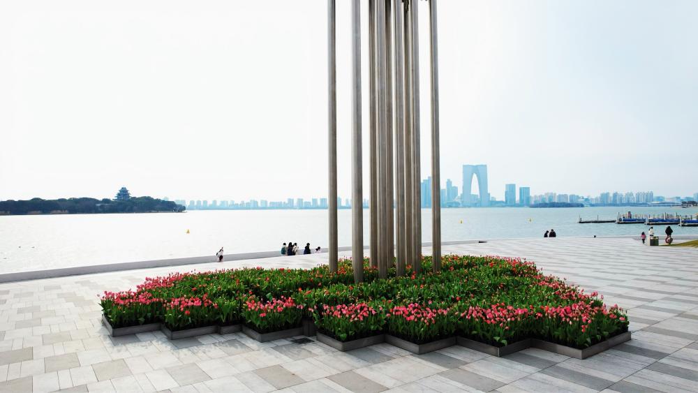 花藝造景的精致裝扮,讓園區(qū)的新春景致更顯靈動多姿。市政集團精心推進節(jié)日掛花、造景工作,重點打造金雞湖大橋、金雞湖人行棧橋、蘇州大道及飛翔雕塑等核心點位的花藝景觀。造型別致的花藝裝飾與橋梁、道路、雕塑相映成趣,成為園區(qū)的新春打卡點。此外,園區(qū)草花已全面完成冬季養(yǎng)護更新,路口草花區(qū)域每日安排專人開展巡視、澆水、修剪等管護工作,五彩斑斕的草花讓園區(qū)步步有景、處處生情。