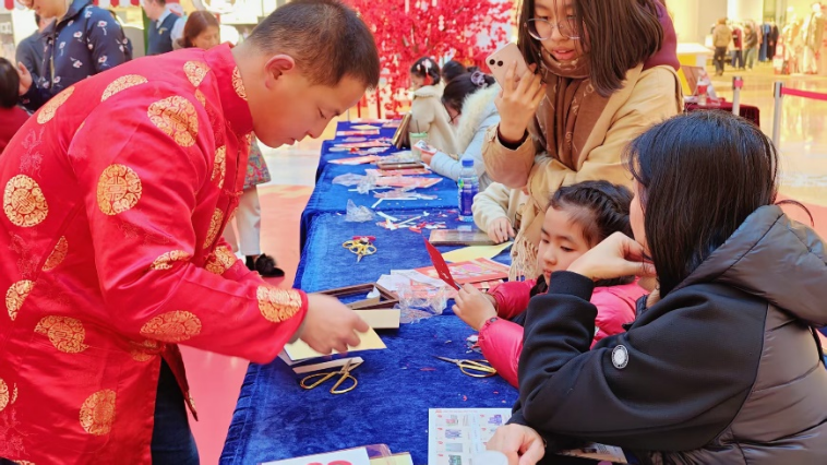 一張紅紙,一把剪刀,剪出濃濃年味。巧手翻飛間,一幅幅寓意吉祥的剪紙作品便躍然紙上。非遺剪紙活動現場,剪紙藝術大師們現場展示剪紙技藝,并帶領大家剪出各式各樣的窗花、福字,為家中增添喜慶氛圍,傳遞對新年的美好祝愿。