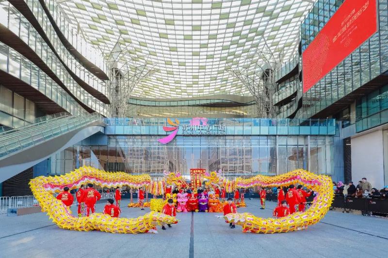 圓融時(shí)代廣場(chǎng)開展“龍騰獅躍游圓融”系列活動(dòng),特邀蘇州市舞龍燈非物質(zhì)文化遺產(chǎn)代表性傳承人蔣達(dá)夫帶領(lǐng)的百花洲龍燈隊(duì),傾情演繹“龍舞盛世,獅躍新春”,這場(chǎng)傳統(tǒng)與現(xiàn)代的激情碰撞,吸引許多市民游客參與現(xiàn)場(chǎng)互動(dòng)。