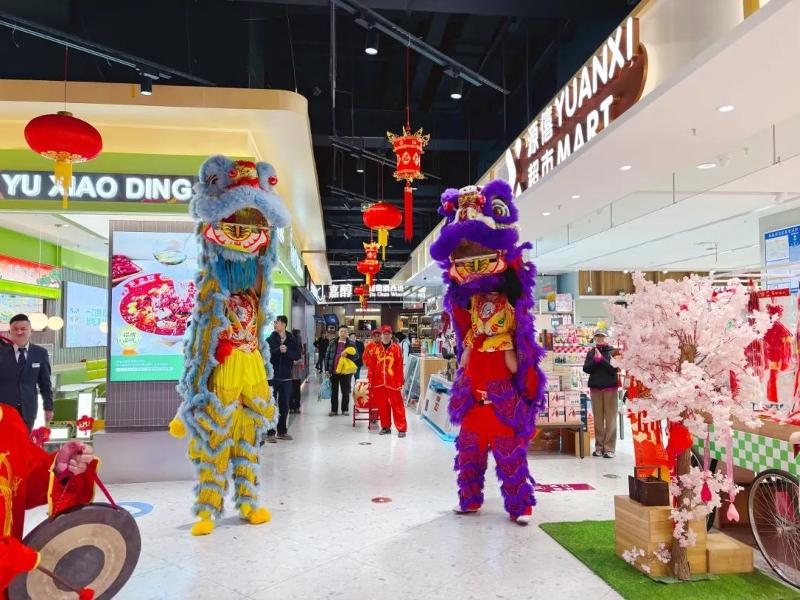 一群憨態(tài)可掬的小獅子在梅花樁上輕盈跳躍,時(shí)而翻滾,時(shí)而嬉戲,還俏皮地從口中“吐”出春聯(lián),為市民游客送上滿滿的新春祝福。這場(chǎng)精彩絕倫的龍獅表演,贏得了現(xiàn)場(chǎng)觀眾的陣陣掌聲,整個(gè)商場(chǎng)洋溢著喜慶。