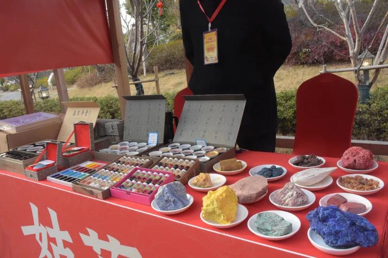 此次大會(huì),張佰林不僅帶來了各色原材料,還帶來了多款針對(duì)不同用戶需求的12色國畫顏料,以及印泥、礦石標(biāo)本等品類的相關(guān)產(chǎn)品。現(xiàn)場(chǎng),他還積極與大家分享國畫顏料制作的工藝流程和產(chǎn)品特色,并邀請(qǐng)有興趣的市民游客去工廠體驗(yàn)。