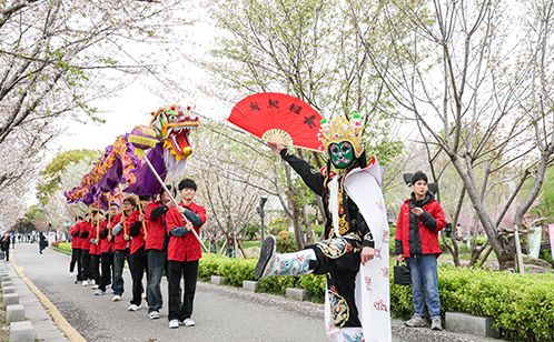 活動(dòng)由沿湖動(dòng)線串聯(lián),設(shè)置快閃表演、趣味巡游與集章有禮等環(huán)節(jié)。舞龍舞獅、變臉、國風(fēng)漢服特色巡游貫穿活動(dòng)現(xiàn)場,“櫻樂充電站”“櫻花能量場”快閃區(qū)用音樂和舞蹈盡顯青春活力風(fēng)貌。