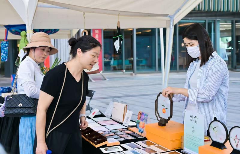 “端午民藝集”將傳統(tǒng)民俗文化與手工藝市集相結(jié)合,為市民帶來一場別開生面的文化體驗。市集匯聚了本地民間手工藝人,展示包括緙絲、刺繡、棕編、剪紙、吹糖人、漆扇等多項民間技藝。