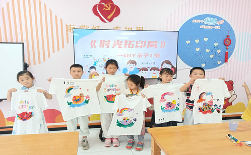 在“時光拓印局”主題活動現(xiàn)場,“紅管”志愿者耐心指導著拓印技巧,幫助每個家庭創(chuàng)作出獨具特色的作品。創(chuàng)作過程中,家長和孩子們在純白T恤上揮灑創(chuàng)意,有的以傳統(tǒng)紋樣為靈感繪制精美圖案,有的則發(fā)揮想象力用鮮艷色彩描繪童趣世界。這場活動不僅讓孩子們體驗到動手制作的樂趣,增進了親子感情,更讓傳統(tǒng)文化以生動的方式融入日常生活。