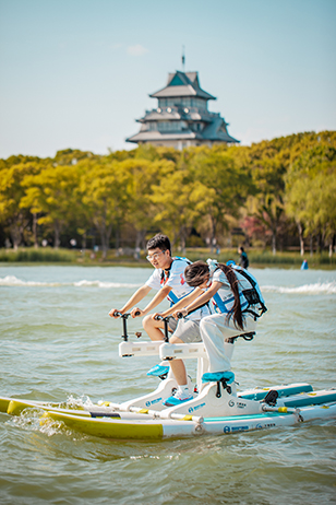 在新時代集團相關負責人看來,依托利用園區得天獨厚的水域資源,引入和培育高品質的體育消費新場景,是提升城市活力的關鍵一步。“在傳統的運營理念下,我們依托月光碼頭、右岸碼頭、望湖閣碼頭,開放經典游船航線,讓市民游客感受白日泛舟或月下夜游的樂趣。與此同時,我們還打造不同的活力場景,讓水從‘可觀賞的風景’變成‘可參與的運動場’,市民游客沉浸其中,擁有更特別的親水體驗。”