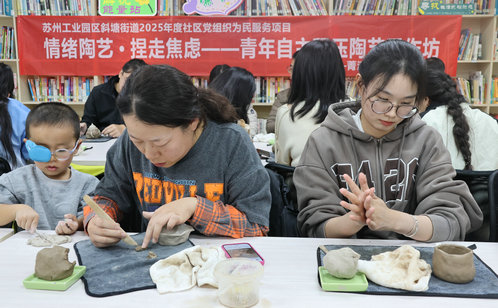 為緩解青年“高壓低幸福感”的現實困境,近日,蘇州工業園區斜塘街道菁匯社區推出“解憂能量站”服務項目,通過“非遺手作+養生文化”的深度融合,構建青年群體專屬的情緒支持系統。項目以“可感知、可參與、可延續”為設計原則,將中醫情志養生、非遺技藝與現代心理療愈理論相結合,為快節奏生活中的青年提供沉浸式減壓體驗。