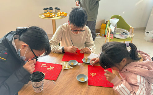 志愿者們圍坐一堂,桌上鋪陳著各式各樣的描金畫模板與金色畫筆,空氣中彌漫著一種既期待又興奮的氛圍。在社區工作人員的指導下,大家紛紛拿起畫筆,開始在這方寸之間勾勒福字、描繪錦鯉、點綴祥云。每一筆都蘊含著對未來的美好期許,每一劃都流露出對鄰里間深厚情誼的珍惜。金色配件在陽光下熠熠生輝,為這些手作畫作增添了幾分華麗與莊重,也寓意著新的一年里,大家的生活都能如這金色般燦爛輝煌。創作過程中,鄰里間的交談聲、歡笑聲此起彼伏,大家或分享創作心得,或回憶過往趣事,那份久違的親切與溫暖在每個人心中悄然流淌。原本素不相識的志愿者們,通過這次手作活動,拉近了彼此的距離,增進了相互的了解,更在無形中織就了一張緊密相連的鄰里情網。隨著時間的推移,一幅幅金光熠熠、寓意吉祥的描金畫作相繼完成。它們不僅是對新年平安喜樂、萬事順遂的共同祈愿,更是鄰里間情深意長的見證。志愿者們手捧自己的作品,臉上洋溢著滿足與幸福的笑容,這份手作帶來的溫情與感動,將永遠鐫刻在每個人的心中,成為東韻社區最寶貴的記憶之一。