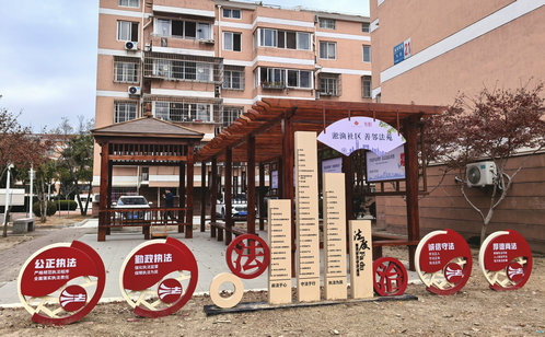 為填補社區法治文化陣地空白,讓居民在家門口就能便捷學法,淞漁社區巧妙結合“口袋公園”建設理念,打造“善鄰法苑”法治文化長廊,將法治宣傳陣地前移至居民休閑場地,以點帶面,構建黨建引領法治賦能的基層治理新格局。近期,法治長廊通過空間布局,增設法治主題微景觀區,巧妙融入“法”字、法律名稱等元素,其中還交替放置了青少年錄制普法音頻素材,居民們用手機掃描二維碼,就可以聽到青少年們錄制的普法內容,將法治思想和法律知識融入居民生活,營造知法、學法、守法、用法的良好氛圍。依托“善鄰法苑”法治文化長廊,社區將休閑、普法、調解為一體開辦“法律知識競賽”“法治漫畫展”等數場法治相關活動,受到了居民的一致好評。