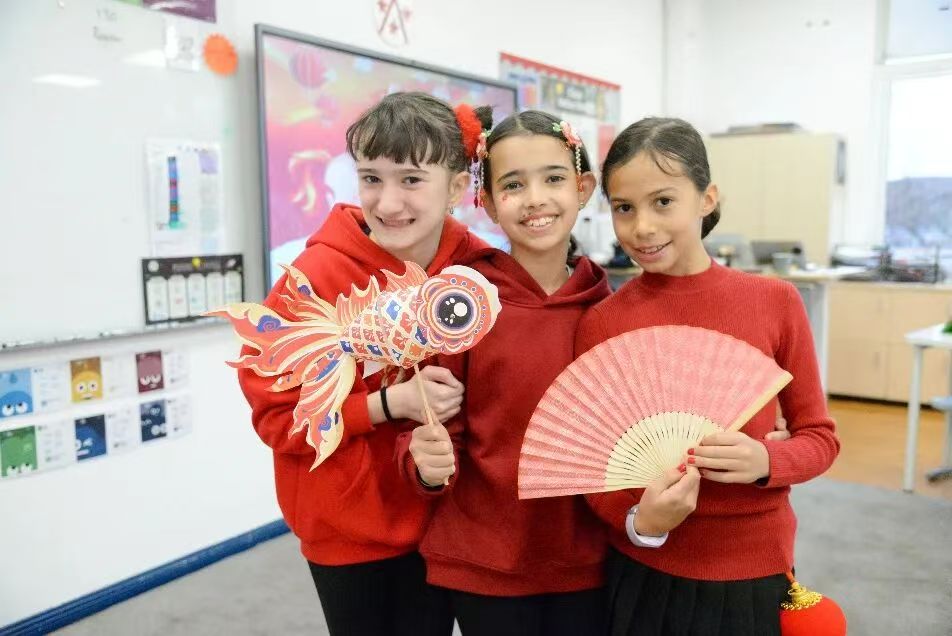 事實上,SSIS的新春慶祝遠不止一場音樂會,學校還打造了精彩的集會和沉浸式體驗活動,各學部也開展了豐富多彩的新年主題活動:幼兒園游園會上,金發碧眼的小朋友剪起了窗花;小學部集會中,孩子們分享了各自對春節的理解;中學部主題活動中,舞龍舞獅、寫福字成為最受歡迎的環節。校園的每一處都被中國紅妝點,每一張臉上都映照著節日的暖光。