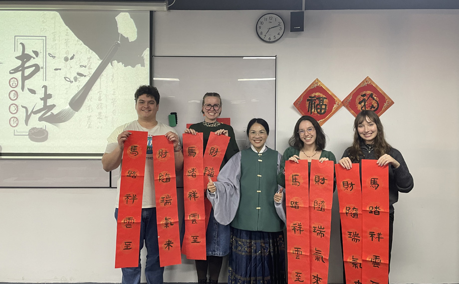 除了美食與游戲,文化體驗同樣不可或缺。春節前,SKEMA商學院還組織了多場書法體驗活動,寫春聯、寫福字備受歡迎。在墨香縈繞的教室里,外籍學子們從執筆姿勢學起,一點一橫、一撇一捺地模仿漢字的結構與神韻。紅紙鋪開,一個個真誠的“福”字、一幅幅寓意吉祥的春聯陸續誕生。學生們興奮地與作品合影,感受著中國人以筆墨寄托對新春美好期盼的獨特傳統。