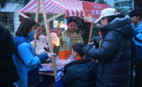 游園會特別設置的非遺文化體驗區成為人氣最旺的打卡點。領花燈的攤位前排起長龍,孩子們興奮地踮起腳尖,栩栩如生的生肖金馬燈、憨態可掬的湯圓娃娃燈……一盞盞花燈流光溢彩,映照出人們對美好生活的期許。便民服務區同樣暖意融融。口腔檢查攤位前,醫護人員耐心講解護牙知識;中醫攤位旁,專業醫師細致把脈問診,為居民提供貼心的健康建議;最熱鬧的當屬湯圓派送點,志愿者們現場熬煮,將一碗碗熱氣騰騰的甜糯送到居民、外賣員和快遞員等新就業群體手中,既暖了胃更暖了心。