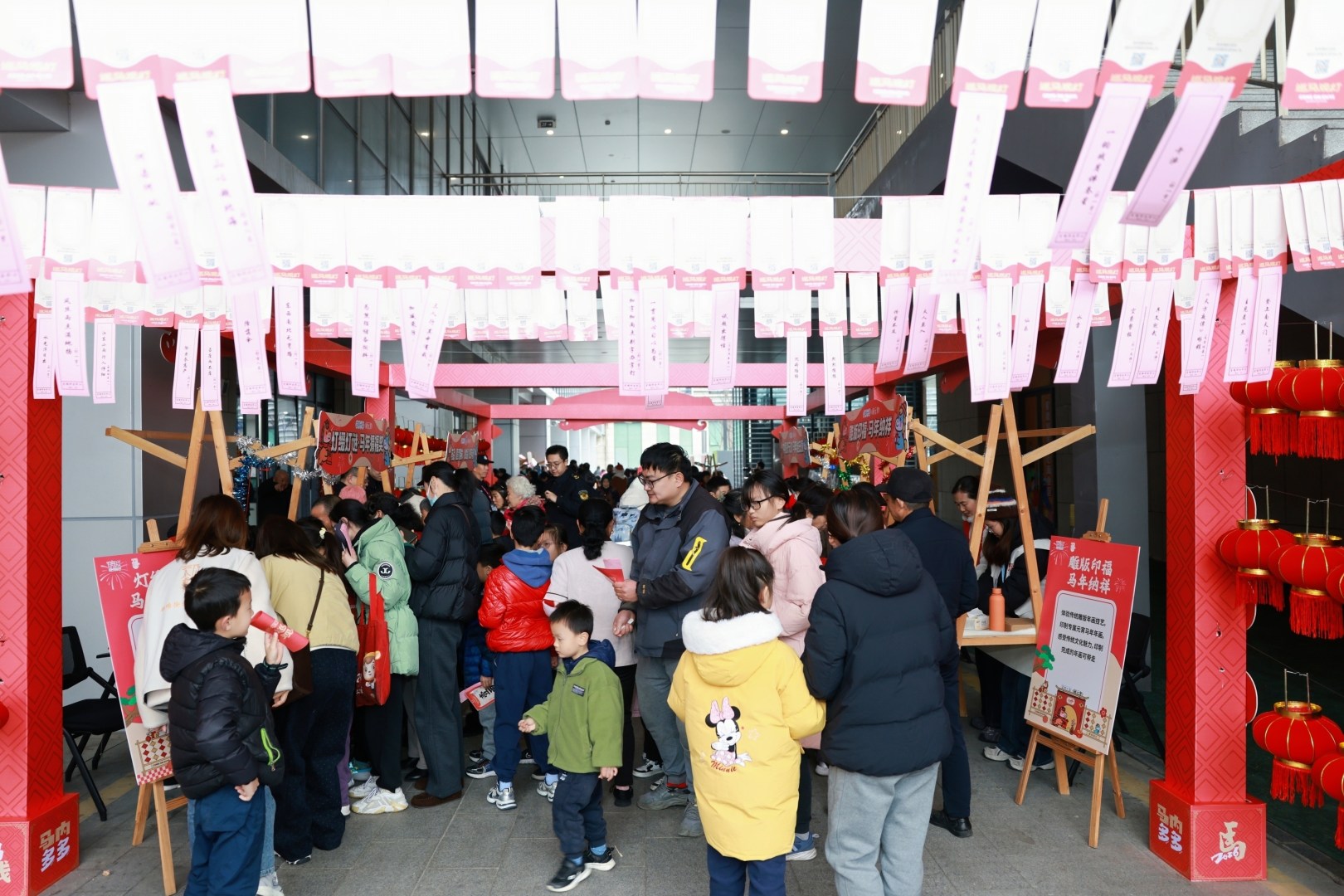 步入園區(qū)城市藝術(shù)客廳,一盞盞形態(tài)各異的傳統(tǒng)彩燈錯(cuò)落懸掛,精致典雅,吸引來(lái)往市民駐足解謎。元宵當(dāng)天,“駿馬迎春 悅享三湖”錦繡園區(qū)惠民活動(dòng)之“燈謎鬧元宵 喜樂(lè)猜不?!痹谶@里熱鬧開(kāi)場(chǎng),傳統(tǒng)雅趣與新春喜樂(lè)在歡聲笑語(yǔ)中深度交融。