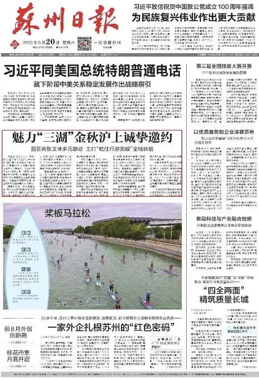 《蘇州日?qǐng)?bào)》2025年09月20日A01版