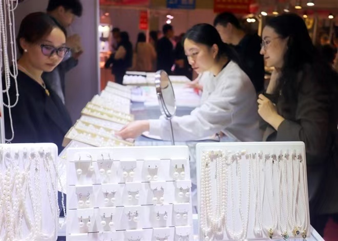 昨日,第19屆蘇州國(guó)際珠寶展在蘇州國(guó)際博覽中心舉辦。本屆展會(huì)匯聚了600多家珠寶商參展,吸引眾多消費(fèi)者前來(lái)參觀選購(gòu)。