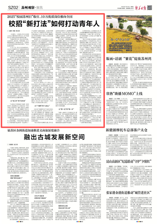 如果說OPC創(chuàng)業(yè)是部分人才的“高階選項(xiàng)”,那么充足的優(yōu)質(zhì)崗位則是蘇州吸引人才的“基礎(chǔ)底氣”。2025年“校園蘇州日”活動(dòng)釋放優(yōu)質(zhì)崗位超10萬個(gè),其中應(yīng)屆生崗位超6萬個(gè)。