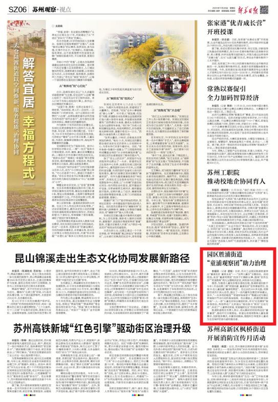 日前,蘇州工業園區勝浦街道舉辦“童浦友好童享未來”——“世界兒童日”主題活動?;顒蝇F場,來自“童浦觀察團”的孩子們踴躍議事,圍繞“自然生態”“家庭教育”兩大議題暢所欲言,積極參與社區建設。