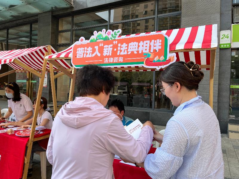 結合傳統節(jié)日,將法治宣傳與民俗文化等相融合開展特色主題活動,以群眾喜聞樂見的形式傳播民法典知識。園區(qū)司法局結合“砥礪奮進新征程——走法治之路,悟法治力量,建法治蘇州”主題實踐活動,圍繞園區(qū)4條公民法治素養(yǎng)提升實踐路線11個法治文化陣地制作H5項目,開展“‘典’開地圖云游法治園區(qū)”線上答題挑戰(zhàn)賽;聯合園區(qū)教育局,在2所學校開展“法治非遺課堂”,寓教于樂,提升青少年法治素養(yǎng)。園區(qū)社會事業(yè)局邀請省優(yōu)秀婚姻家庭輔導員在結婚登記點與新人交流分享婚姻家庭相關法律知識,倡導文明婚俗,引導群眾構建和諧家庭關系。園區(qū)法院結合節(jié)氣熱點制作“民法典宣傳月|麥穗未盈時,法潤民生處”互動普法圖文,以物業(yè)權益、鄰里糾紛等民生“小切口”詮釋法律“大道理”;打造“園法護原創(chuàng)”品牌并發(fā)布系列普法短視頻,運用AI動畫技術生動解讀民法典條款,推動法律條文從“靜態(tài)文本”向“動態(tài)場景”轉化。婁葑街道以端午節(jié)為契機,開展主題市集游園會,設置游戲互動、文創(chuàng)手作、普法宣傳、健康義診等特色區(qū)域,將民俗文化與法治宣傳、便民服務巧妙融合,推動法治精神融入居民生活。