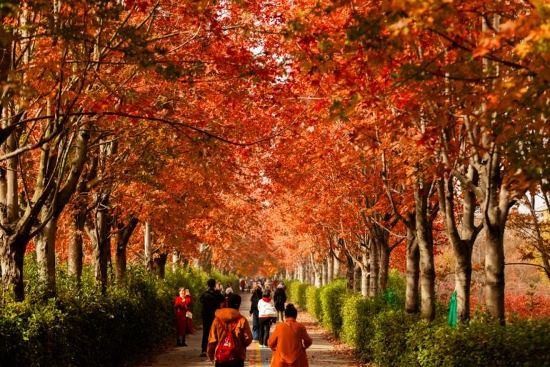 陽澄湖浦田生態有機農業園:浪漫熱烈的紅楓大道