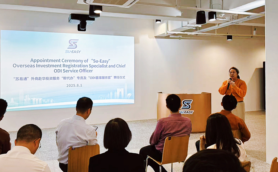 外商赴華投資設(shè)企如何獲得高效支撐?蘇州工業(yè)園區(qū)“蘇易通(Su-Easy)”跨境投資服務(wù)助力全球投資者“一鍵落戶”。近日,“蘇易通”首個(gè)境外幫代辦專窗在蘇州工業(yè)園區(qū)新加坡國(guó)際商務(wù)合作中心正式設(shè)立,首批“蘇易通”服務(wù)專員受聘上崗,將為兩地乃至更廣泛區(qū)域的投資者提供專業(yè)高效的全流程幫辦服務(wù),助力企業(yè)跨境投資業(yè)務(wù)高質(zhì)量發(fā)展。
